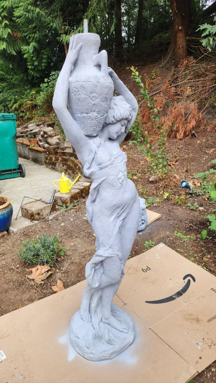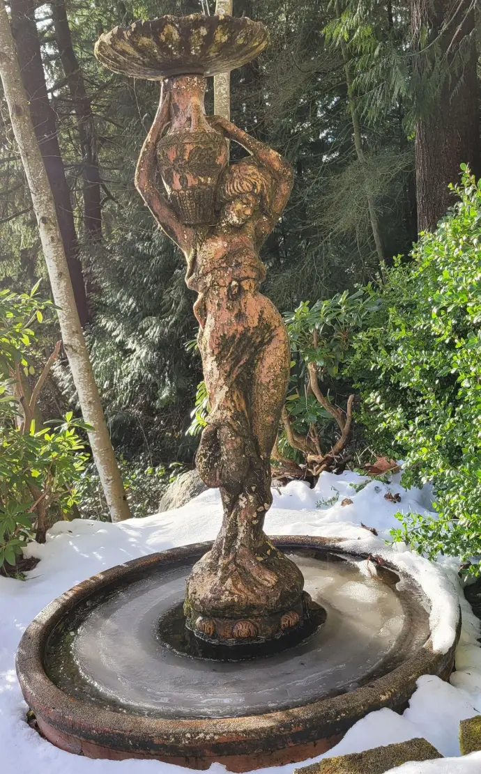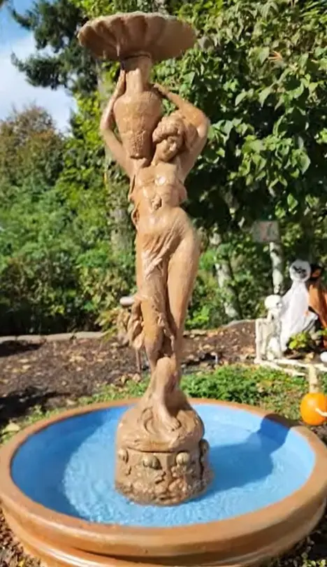 When your 25-year-old fountain looks like she’s auditioning for a horror movie, you either call a priest… or grab a power washer.